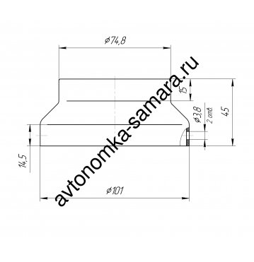 Переходник, д. 2507. Диаметр Ø 90 / 75 мм. Применяется для соединения воздуховода сб. 2556, диаметр которого Ø 75 мм, с выходным отверстием отопителя PLANAR 4DМ.