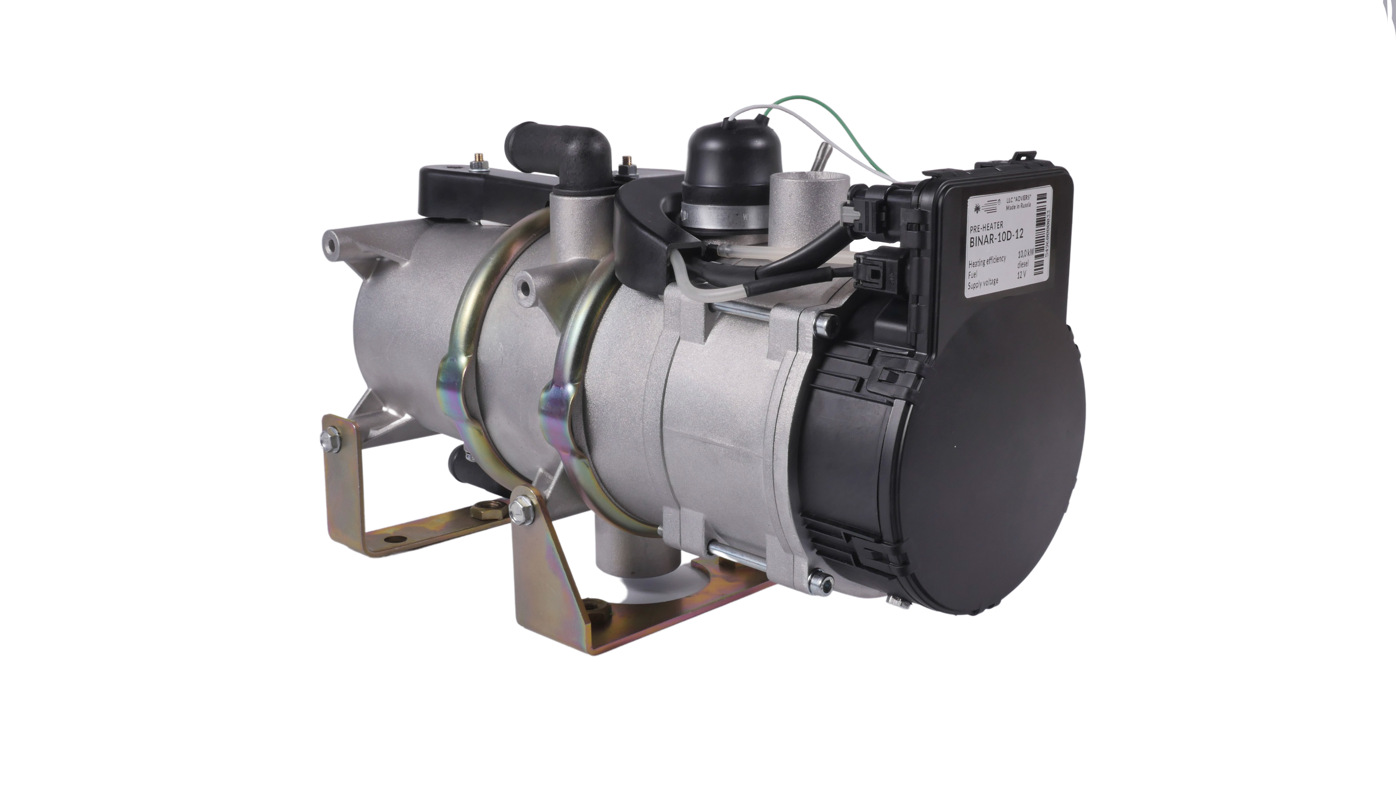 Предпусковой жидкостной подогреватель БИНАР-10D, работает независимо от двигателя. Этот подогреватель с тепловой мощностью 10 кВт служит для предварительного прогрева двигателя, чтобы исключить холодный запуск и может работать со штатным отопителем автомобиля, для отопления салона в холодный период. БИНАР-10D работает на дизельном топливе и предлагается в двух версиях 12 В и 24 В Выбора ручного или автоматического режима работы. В подогревателе предусмотрена функция догревателя которая автоматически помогает двигателю достигать и поддерживать заданную температуру.
